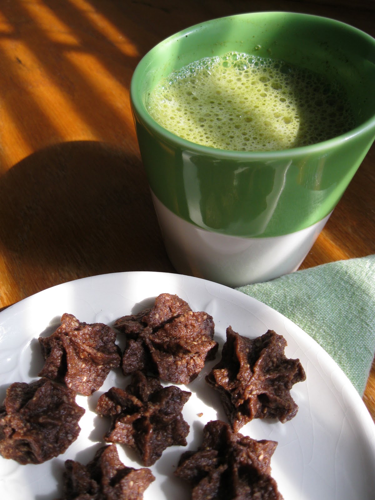 I so enjoy the late afternoon sunlight on lazy spring days. Not that I experience many of those, lately! But when I do happen to capture that moment of sunlit solace at home, I love to savor it with some small indulgence…like a matcha (green tea) latte or some minty matcha mini morsels.