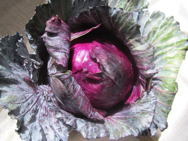 I love Tuesday afternoons. On Tuesday I always leave work on time. On my way home, I stop to pick up our weekly box of organic produce. I love looking forward to my little organic Tuesday surprise. I never know what I’ll get. And then there’s the extra “add-ons” that my hubby likes to surprise me with…6 bunches of random greens, 25 lb. bag of carrots, bags of raw nuts, dried herbs, raw milk, grass-fed beef…who knows what else? After some good-natured teasing from the ladies about my hubby’s gigantic add-on orders and who’s gonna be cooking it all, I rush home to unload my box. It’s feels like Christmas as I eagerly unwrap the brown paper to reveal this week’s secret prize. There’s always something a little special or unexpected, like watermelon radishes, bright green spiral-tipped cauliflower or heirloom tomatoes. Even a simple head of purple cabbage seems like a work of art.