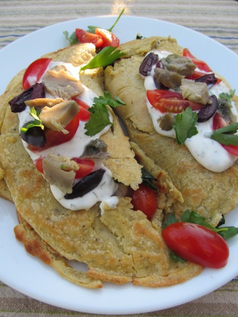 I have said it before, some of my tastiest and loveliest meals are those that began with the question: What to do with this? This recipe for Chickpea Crepes and Artichoke Aioli was an immediate favorite! It turned out to be a pretty classy dish and it all began with a simple bunch of artichokes from my weekly box of organic bounty.