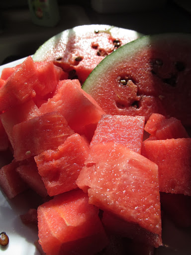 Next, I cubed and seeded about 5 cups of fresh, organic watermelon and tossed it in the blender with my chia gel, 1 cup of water and 1 tablespoon of freshly squeezed lime juice. You could add some sweetener (such as agave, maple syrup or stevia), however I was looking for something refreshing and fruity, but not too sweet.