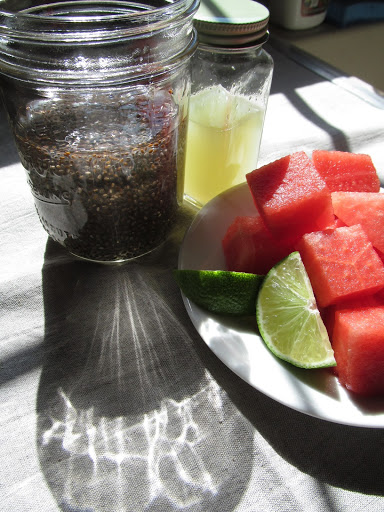 Let’s start with a Watermelon Chia Agua Fresca. In Spanish, agua fresca means “fresh water”. These drinks are typically made of fruit-infused water and they are a light, fruity way to replenish on a hot summer day. I had half a watermelon in the fridge begging to be consumed, so I decided to try making an agua fresca with watermelon. Adding chia seeds to your beverage is a good way to sneak a little superfood power into your hydration process. Chia seeds are not only great for staying hydrated, they also provide a source of protein, fiber, minerals (like calcium and iron), antioxidants and omega-3’s. Can’t go wrong there…toss ’em in!
