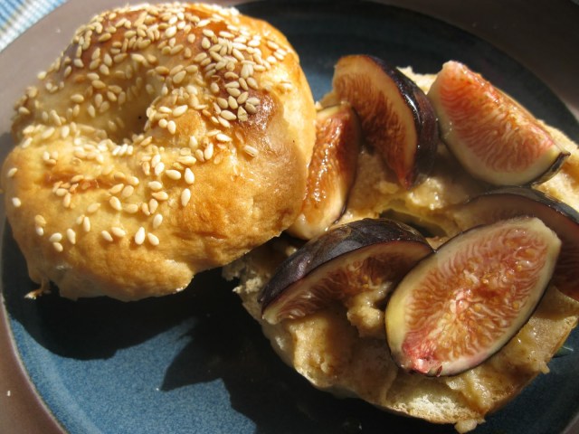 Hmmm…what now? You can’t go wrong with sliced fresh figs atop a toasted homemade bagel smothered in cashew cream cheese and drizzled in honey. A dear friend of mine thoughtfully gifted me her homemade bagels which, when topped with organic figgy goodies, made for one of those rare and precious Sunday solace moments.