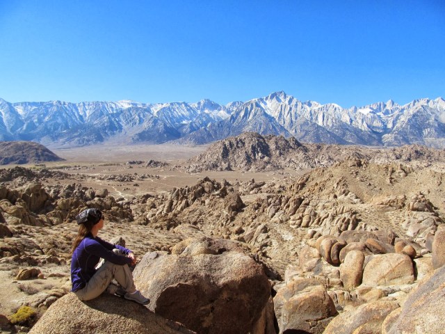 Alabama Hills was alive with activity this holiday weekend. Campers around every corner. Trailers in every turn-out. Climbers in every nook and cranny. Seeking a little solitude, I headed back into the hills a bit to one of our favorite viewpoints. We usually drive up to a saddle where the view of this rocky wonderland is all-encompassing. Not to mention the layer of grand granite peaks in the background: Mt. Williamson, Mt. Whitney, Lone Pine Peak. Needless to say, it is definitely a “take it in” kind of view.