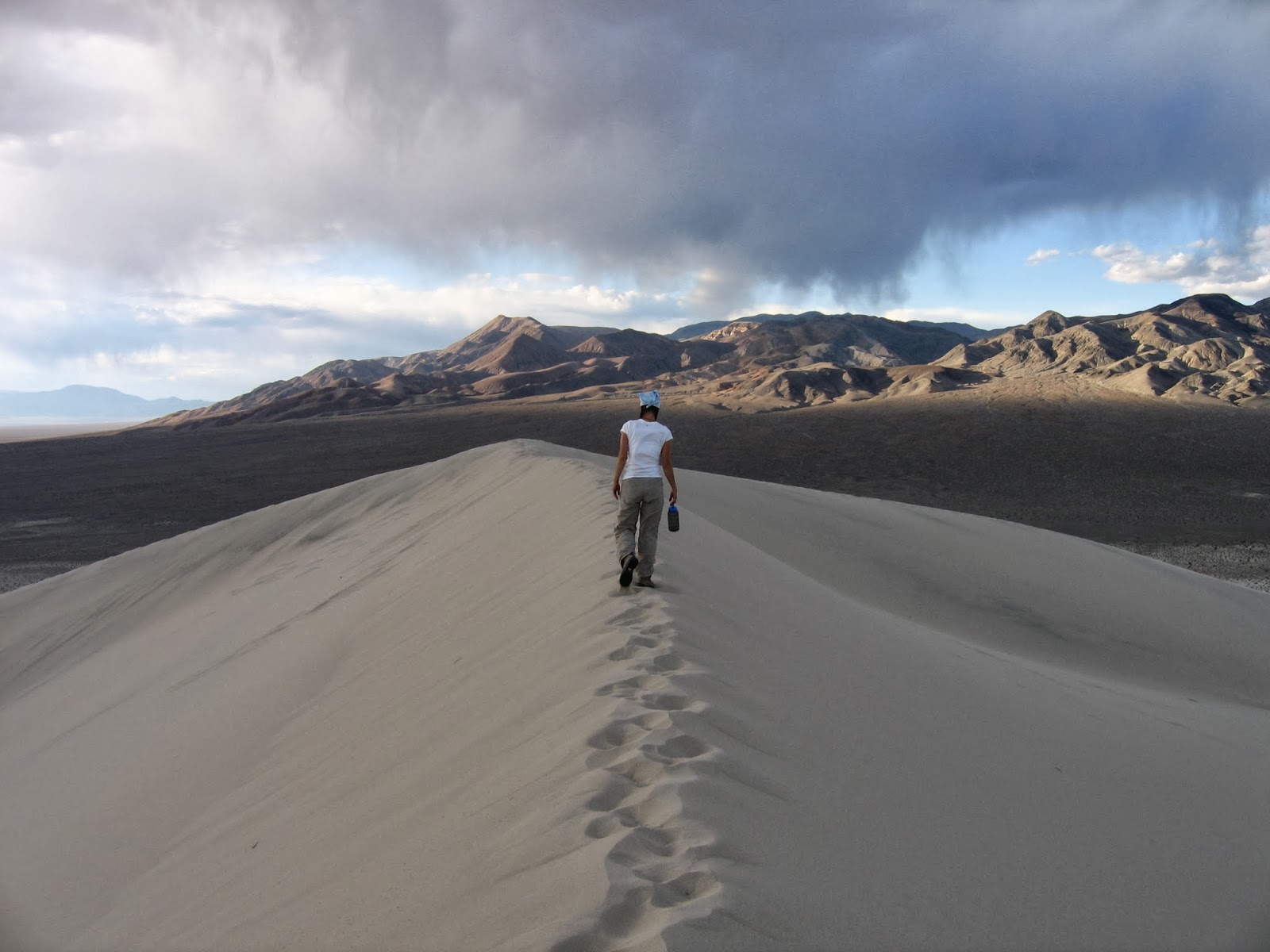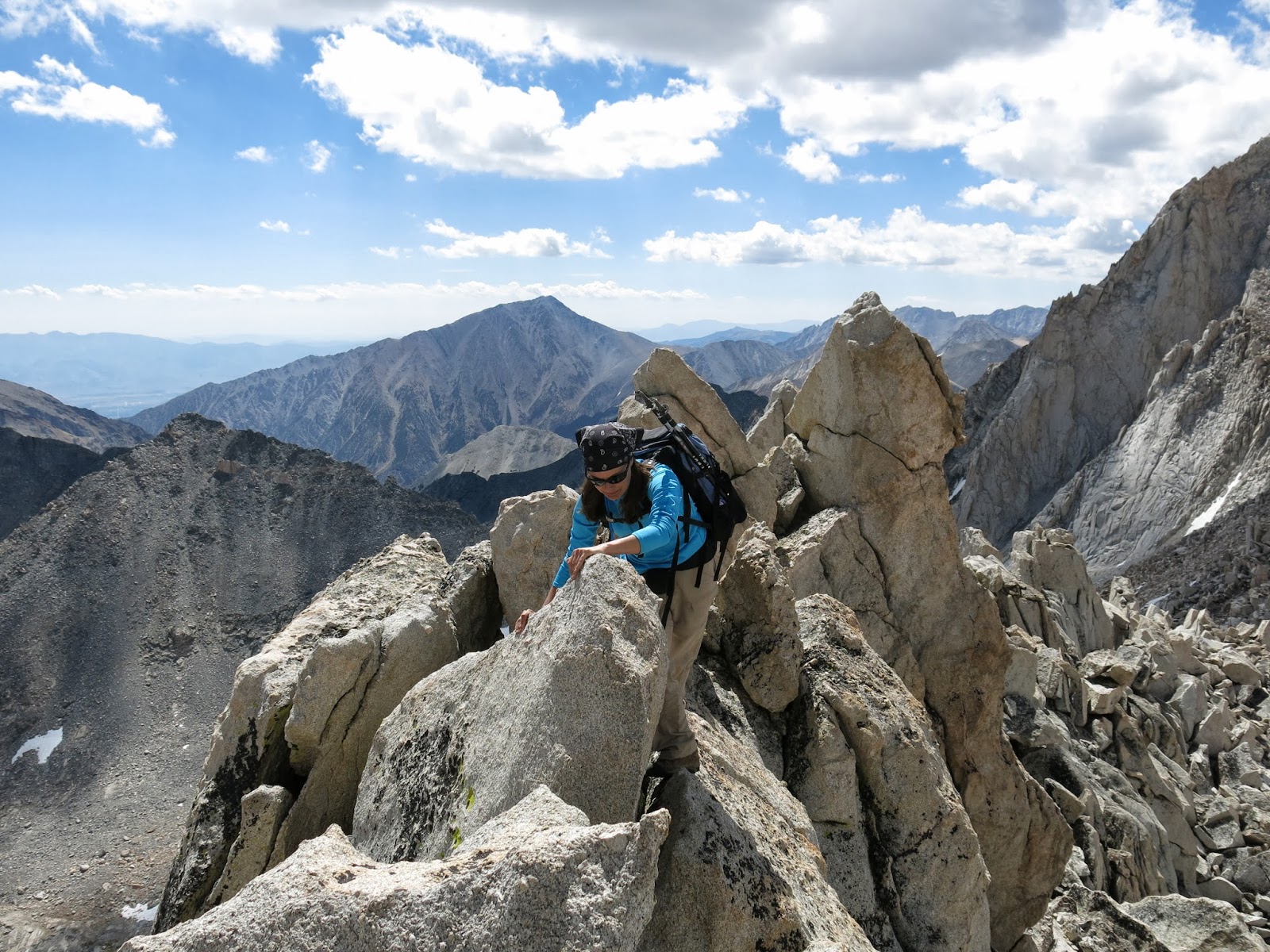 My hubby, my hounds and I live in a smallish town in the Mojave Desert near the foot of the Eastern Sierra Nevada. Many people think it’s the middle of nowhere, but we think it’s the middle of somewhere perfect. With a grand granite jungle gym to the west and a vast desert playground to the east, we have beauty, nature and adventure right at our doorstep. We have been hiking and climbing together in this wonderland for about fifteen years. We love it and having survived several years of noisy, smoggy, crowded beach city life, we feel most grateful to be able to live in a place like this. Though life is not always as picture-perfect as scrambling along a striking mountain ridgeline or walking a desert sand dune at sunset, we do so enjoy our moments.