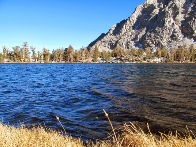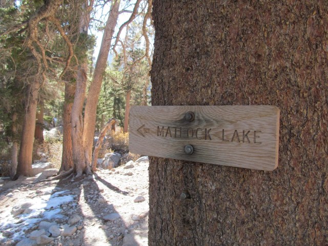 We happily hiked along with the sun at our backs and a chill on our cheeks, enjoying the mood of the changing season. It felt good to be out on the trail, moving, breathing, thinking, talking. Hiking our way up the Kearsarge Pass trail, we decided to take a different turn and visit someplace new, pausing first at Flower Lake to play with the camera and try out some new techniques. Better luck next time, as far as those photos go. But it was a good try.