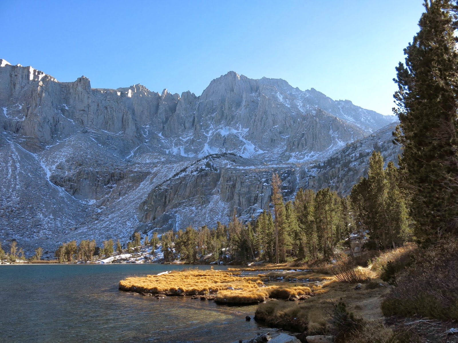 Last week, you never would have guessed it was November in these parts. Eighty degrees during the day, short sleeves, coffee on ice. We thought our Sierra season was done, but with no snow on those ridgelines and this unseasonably warm weather, we decided to go for a little hike up the Kearsarge Pass Trail.