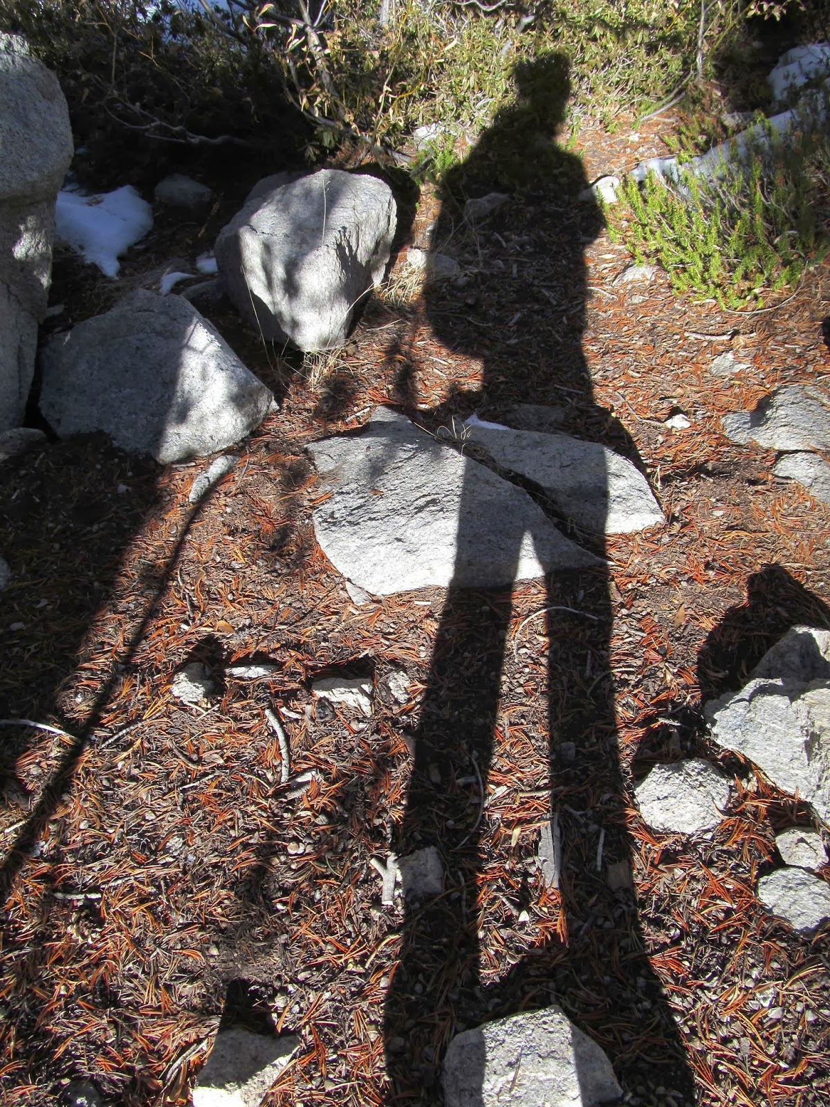 We happily hiked along with the sun at our backs and a chill on our cheeks, enjoying the mood of the changing season. It felt good to be out on the trail, moving, breathing, thinking, talking. Hiking our way up the Kearsarge Pass trail, we decided to take a different turn and visit someplace new, pausing first at Flower Lake to play with the camera and try out some new techniques. Better luck next time, as far as those photos go. But it was a good try.