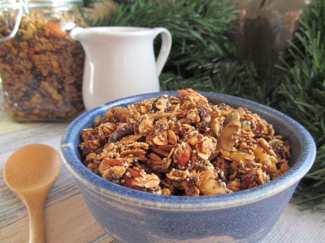 Gingerbread Granola. Mmmm, how perfect is that? I used ingredients from this recipe to ginger up my own favorite dehydrator granola recipe. Give your day a cozy beginning with a bowl of these warm and wintery spices.