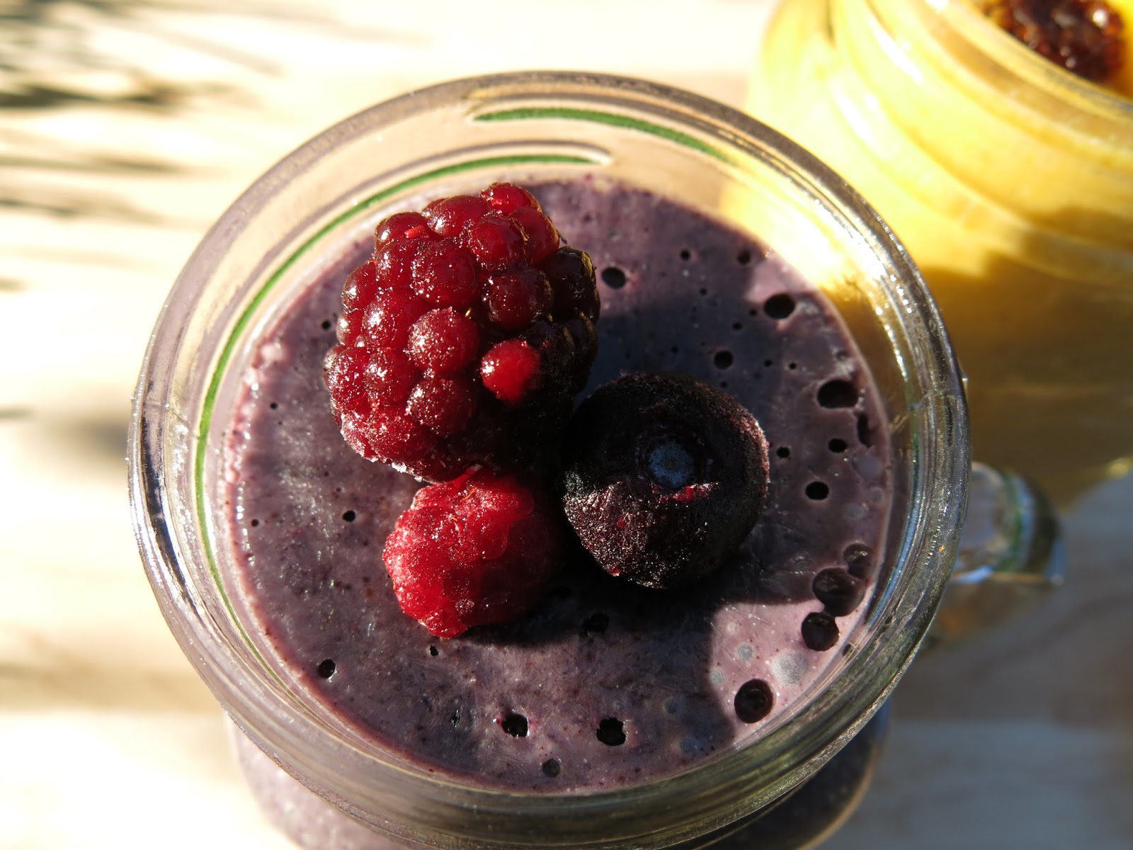 There are so many smoothie recipes out there to use for inspiration, there is no end to the possibilities. Among my list of favorites is the Orange and Green one, of course. This Blueberry Pomegranate guy is so refreshing, especially when the temperature starts to rise. I have taken a liking lately to this Goldenberry smoothie, though I prefer my own altered version of the recipe. And this Berries and Cream is a dreamy treat to enjoy in the midst of a busy day. (I can’t remember where the inspiration for this one originated, but I believe it was here.)