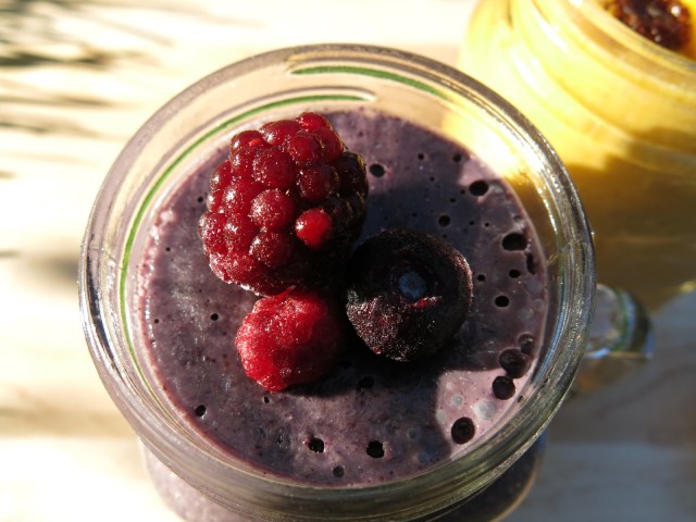 - Blend all ingredients in a high speed blender. Add more ice or liquid to create a consistency to your own liking. If you like it creamier, add more yogurt. If you like it fruiter, add more berries. Make it your own.