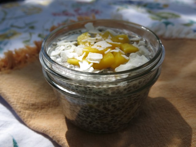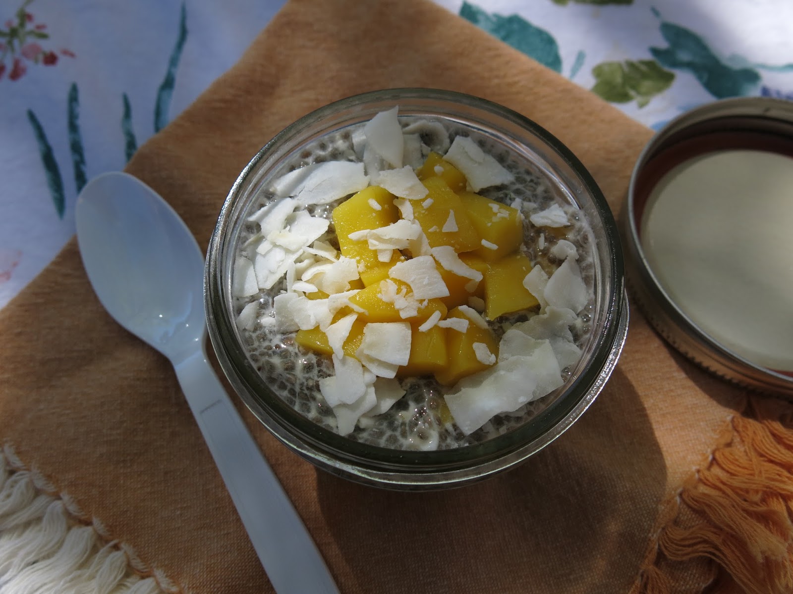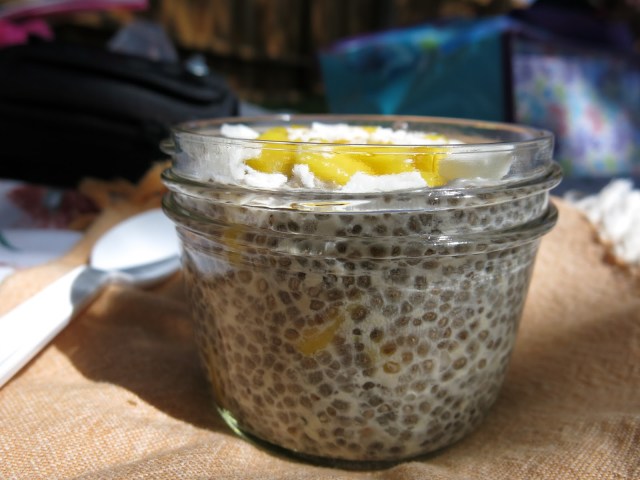 I also discovered a small jar of chia pudding is a delicious and delightful addition to that sneak-away workday picnic. I was so enamored with this little jar of coconut mango chia pudding during a recent playground picnic, I couldn’t resist snapping some photos. Until a small voice suddenly directed me to stop taking pictures of my food and eat my lunch! Touché, wee one.