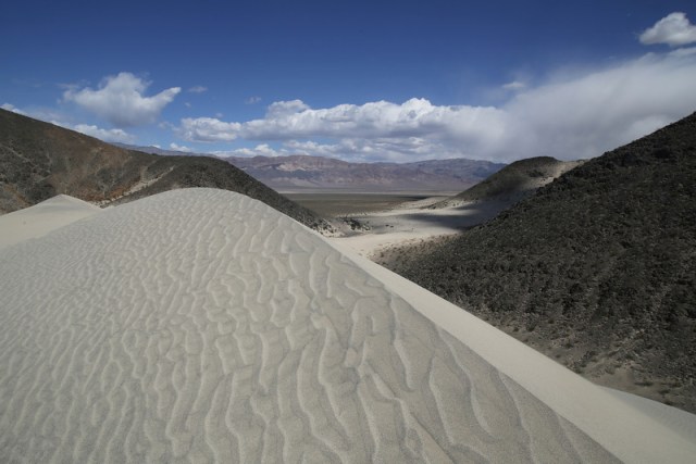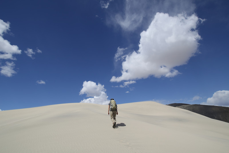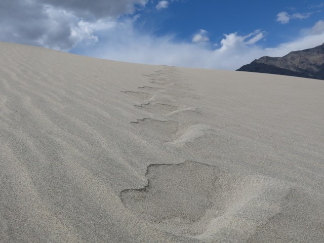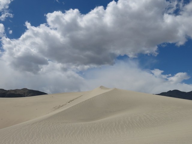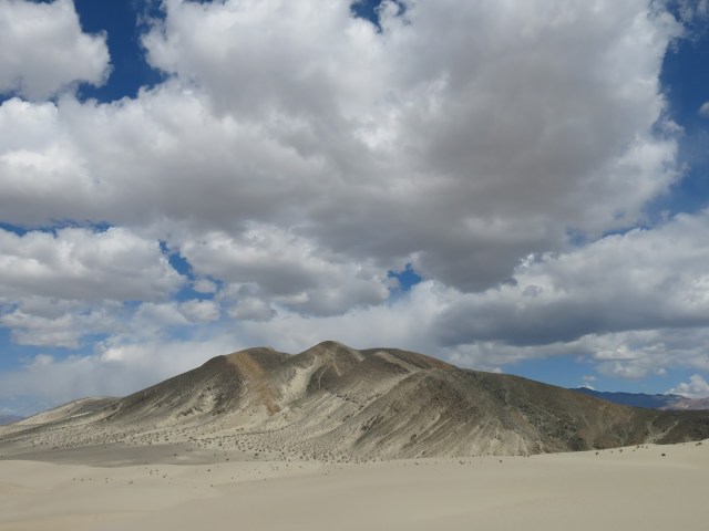 It was a perfectly beautiful day to be wandering about on sand dunes. Off in the distance there was some weather happening over the Sierra which made for that picture-perfect cloud-filled sky.
