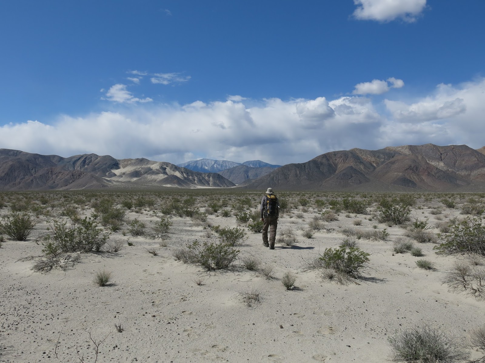Driving into the more remote northwest end of Death Valley National Park, we left the road a few miles before reaching the fairly well-known Eureka Dunes. Eureka Dunes are quite lovely themselves, with a beautiful view of the Last Chance Range. We had visited those dunes before and planned to try to find a place to camp there later, but first, we wandered off into the open desert in search of those lesser-known “hidden dunes.”