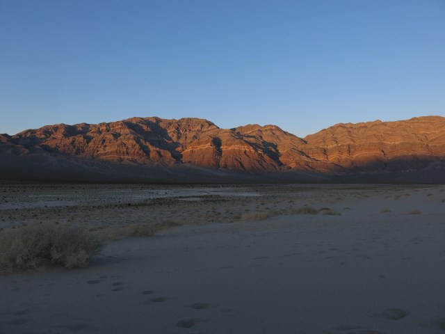 As the day began to dwindle we slowly sauntered back across the three miles or so of open desert to the car. We were hoping to find a site available down the road at the small Eureka Dunes campground. We drove the short distance of bumpy dirt road and lucky enough, we found ourselves an available campsite and settled in for the evening.
