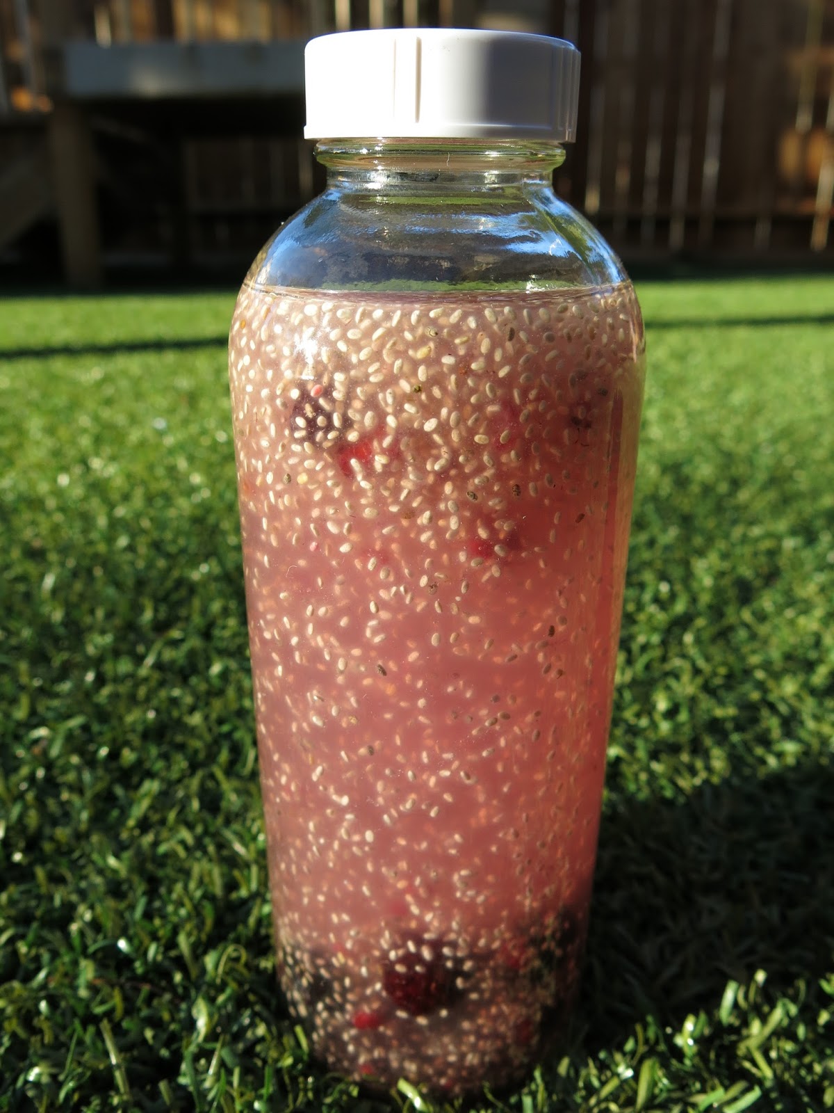 From time to time I also enjoy my coconut water flavored with fresh fruit and chia seeds. Chia seeds are not only great for staying hydrated, they also provide a source of protein, fiber, minerals (like calcium and iron), antioxidants and omega-3’s. You can buy similar chia drinks in a bottle, but this homemade version is low in sugar, a cinch to make and easy on the budget. Simply add a tablespoon, perhaps a little less or more, to a bottle of coconut water. Shake well and set it in the fridge for 30 minutes or so, while the chia seeds gel up. Then add your favorite fruit (I like simple berries or citrus) to infuse it with flavor.