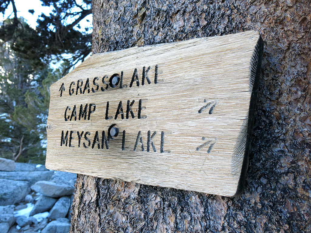 It was a very quiet day on the trail, so peaceful and absolutely still. Hardly a human footfall, no bustle of busy animals, not even a wind whisper in the trees. The trail to Meysan Lake is a very pleasant hike and we simply enjoyed the gentle grade, the easy terrain, the rhythm of the walk, the talk, and the quiet solitude.