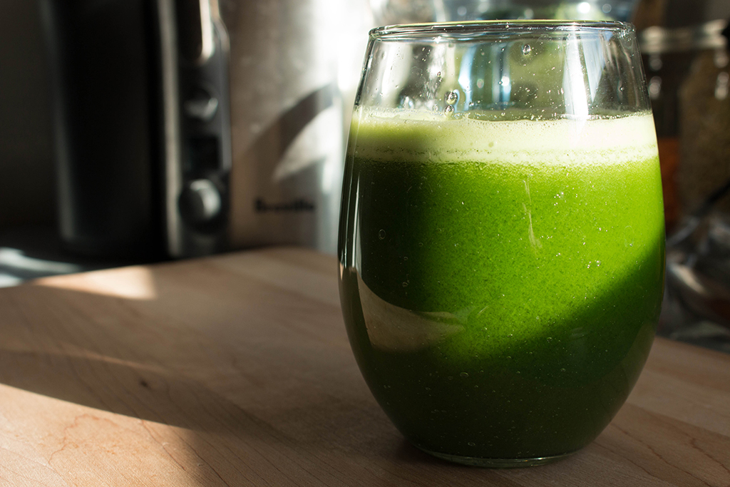 Any time I find myself in a food funk, suffering the effects of a temporary lapse in healthy eating habits and moving in slow motion, I always turn to what my mama used to call a “green drink”. When seeking motivation for a fresh new start, a tall glass of freshly juiced greens always does the trick for me. All those nutrients, vitamins and minerals going straight to every little cell, as if to say: It’s okay, help is on the way! When I find myself in such a state, I round up the veggies, fire up the juicer and wait for the impending inspiration. I like my juice as green as can be, but an apple or a golden beet add just enough sweet. Add to that a squeeze of tart lemon juice plus a little zing of ginger root and you have yourself that perfect yummm balance.