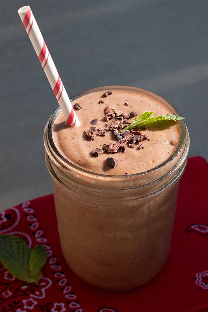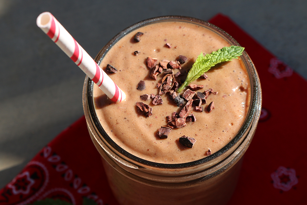 Nothing beats the heat on a summer day like a good old-fashioned milkshake. Though simple to make, this particular shake is far from old-fashioned. I am not usually one for chocolate, especially when it comes to cakes and shakes. I would almost always choose vanilla over chocolate. Except when mint is involved. There is just something about the combination of chocolate and mint that I really do adore. So I threw a couple frozen bananas in the blender with a few tablespoons of raw cacao powder, one or two spoonfuls of crunchy cacao nibs, a teaspoon or more of mint extract and a handful of ice cubes. I added however many cups of homemade hemp milk, blended on high speed until it reached that perfect milkshake consistency.