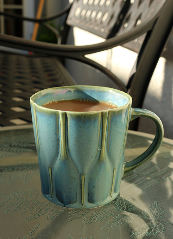 I would love to get lost in this space of mine right now, but I haven’t got the time. For now, I am just happy to share with you my morning moments, my favorite cup, my loyal pup, my peaceful place to sit as that early light just begins to hit the patio on a refreshingly cool almost-autumn morning. I thank goodness for these little bits of peace and quiet amid my crazy chaos and I truly hope that you enjoy yours, too. Know that I am thinking of you.
