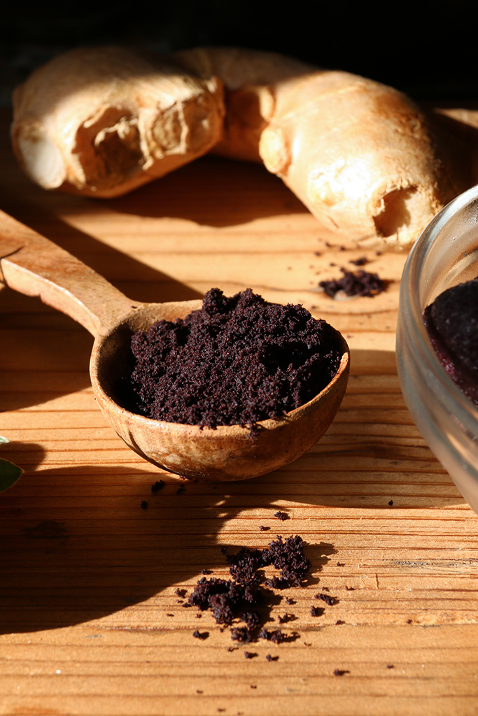 And then there is this “superfood latte” thing (did you know that superfood lattes are actually a thing?!). One day I came across this superfood latte idea and, of course, with my mind distracted by ginger and berries, those sneaky two managed to invade this recipe, too. This time it’s all about the maqui berry and acai. This super-berry duo is packed with antioxidants, is low glycemic and contains healthy fats as well as beneficial vitamins and minerals. I like to add a little collagen powder to promote joint care, a healthy gut and skin. Ashwagandha, known to be an adaptogen, serves as a balancing force against the negative affects of stress. Ginger is good for the belly and helps battle inflammation. Raw, local honey supports the immune system with it’s anti-microbrial properties and it definitely sweetens the deal.